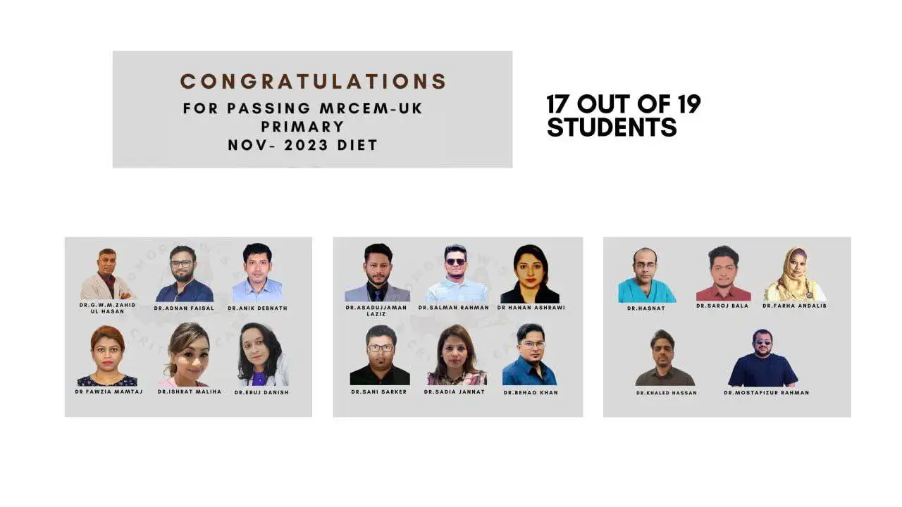 17/19 CANDIDATES PASSED SUCCESSFULLY PASSED MRCEM PRIMARY-UK